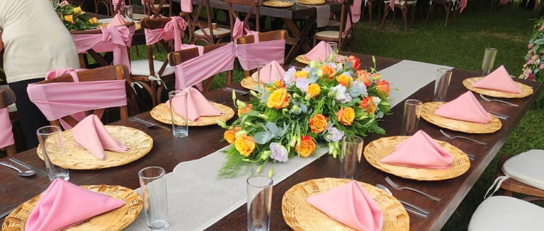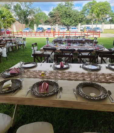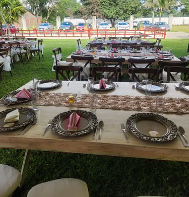 Servicio de mobiliario y banquetería a tu disposición.
