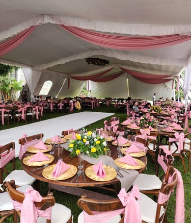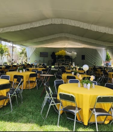Contamos con mobiliario, toldos y banquetería para tu evento inolvidable.